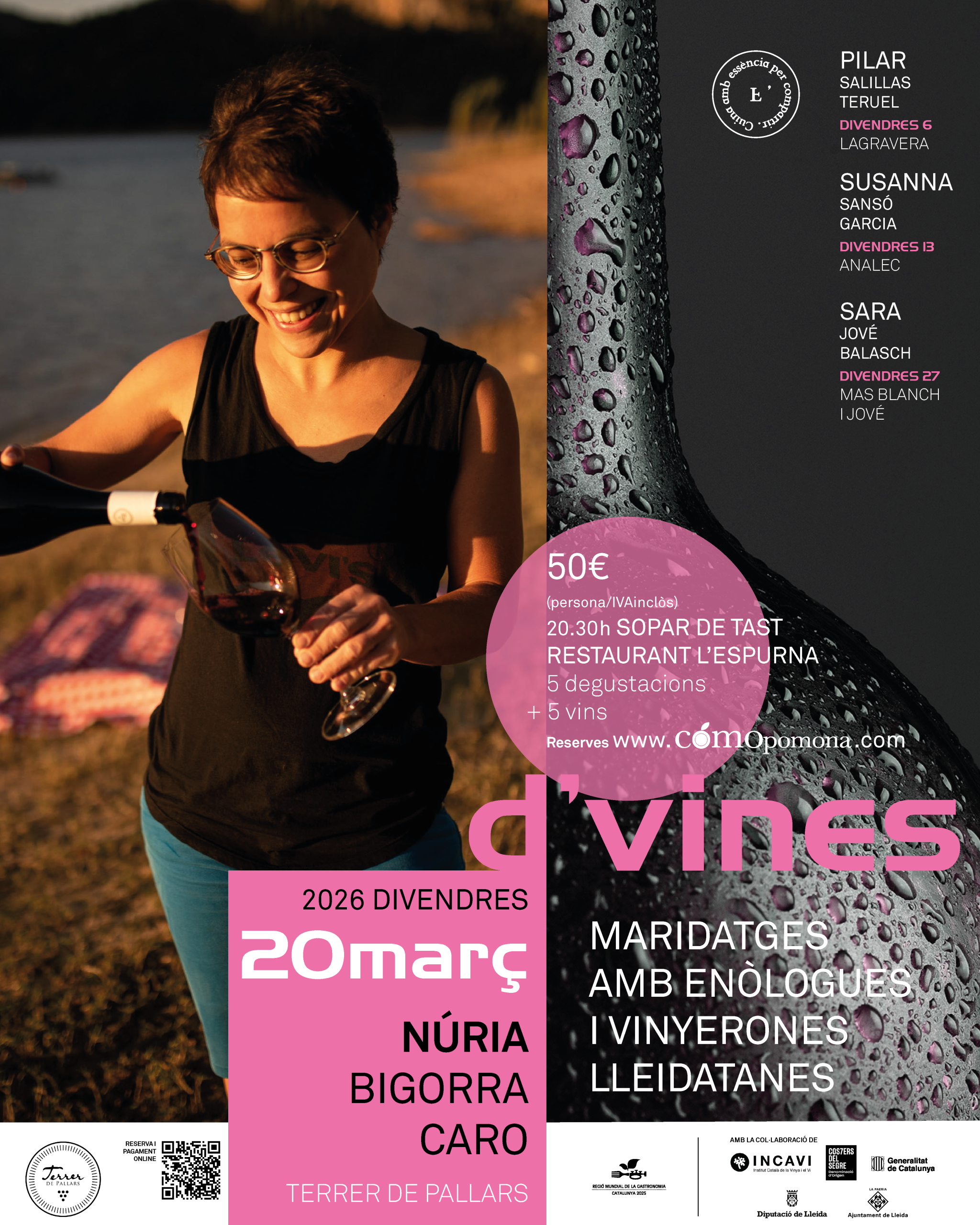 Aquest març de 2026, Como Pomona organitza la cinquena edició de d’vines Campanya de promoció i visibilitat de les dones de la vinya i el vi de Lleida.